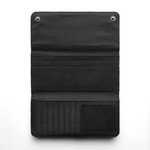 Long internal note & card compartments, mesh window card sleeves, double snap closure